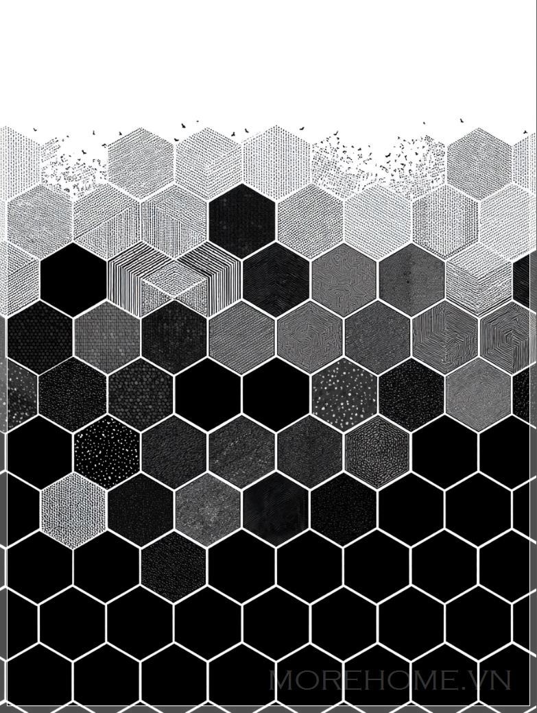 Việc sử dụng đen và trắng trong thiết kế hình học này có thể hiểu là một cách để tạo ra sự tương phản mạnh mẽ mà không cần đến màu sắc rực rỡ. Đen và trắng luôn mang lại một vẻ đẹp giản đơn nhưng sâu sắc, một vẻ đẹp có thể kích thích cảm xúc mà không làm cho mắt bị rối mắt. Hình lục giác, với cấu trúc đặc biệt của nó, tạo ra một cảm giác lạ lẫm nhưng cũng rất quen thuộc, khiến cho mỗi sự chuyển động của nó như một câu chuyện không lời, kể về sự đối lập và hòa hợp trong cùng một thể thức.