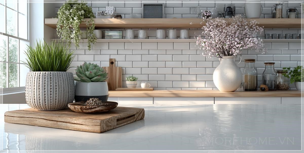 Không gian bếp hiện đại không thể thiếu sự tiện nghi, với các thiết kế thông minh giúp tối ưu hóa việc sử dụng. Các yếu tố như tủ bếp gắn tường, kệ mở để đồ, bàn ăn đa chức năng không chỉ giúp tiết kiệm diện tích mà còn mang lại cảm giác thoáng đãng, dễ chịu. Sự sắp xếp hợp lý của các vật dụng trong bếp giúp người dùng có thể dễ dàng tìm kiếm và sử dụng, đồng thời tạo ra một không gian sinh hoạt chung cho gia đình thêm gắn kết. Bên cạnh đó, những món đồ trang trí tinh tế như đèn chiếu sáng hiện đại, chậu cây nhỏ hay những vật dụng nội thất thiết kế tối giản cũng đóng vai trò quan trọng trong việc nâng cao tính thẩm mỹ cho không gian bếp.