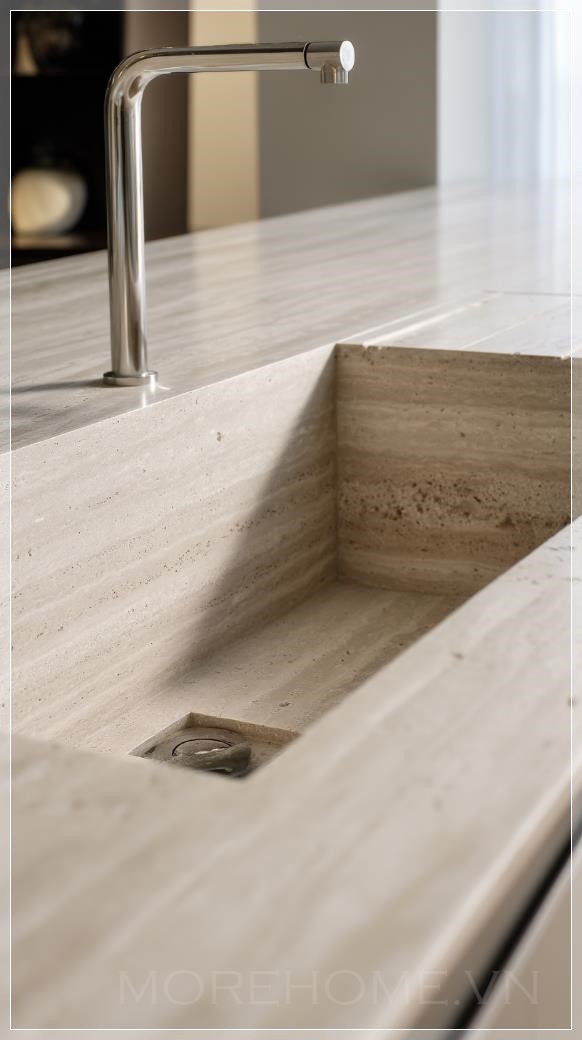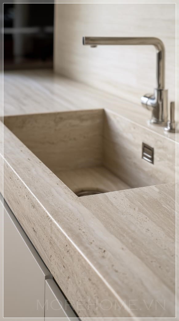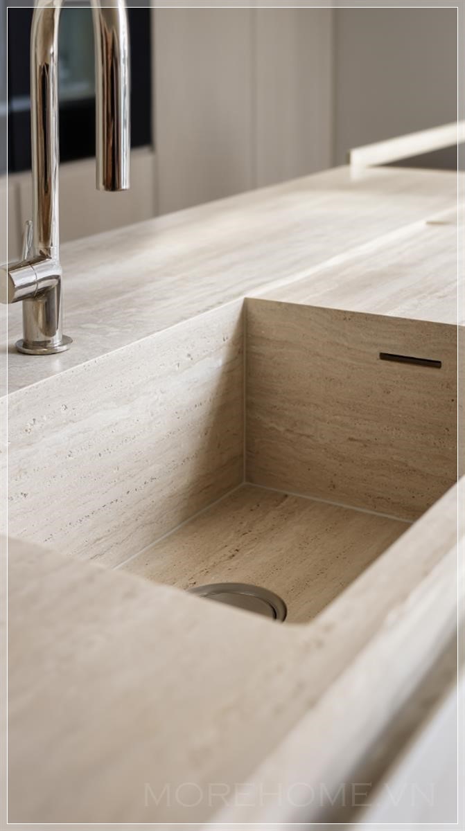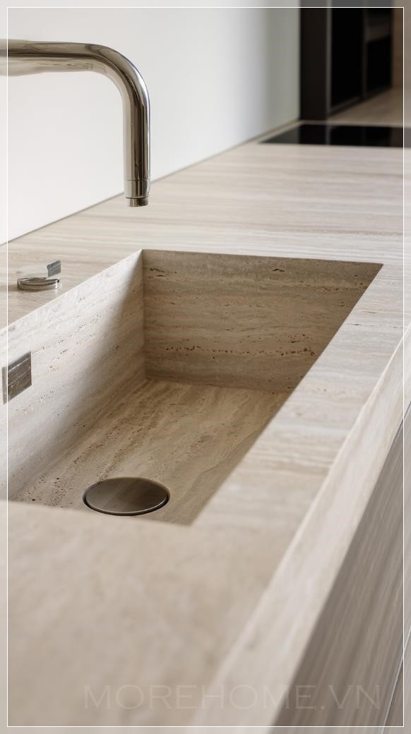 Trong không gian bếp hiện đại, mỗi chi tiết thiết kế đều đóng vai trò quan trọng trong việc tạo nên vẻ đẹp tổng thể. Một trong những yếu tố không thể thiếu là bồn rửa bếp. Với sự phát triển không ngừng của công nghệ và xu hướng thiết kế, những mẫu bồn rửa tích hợp hiện đại đã không chỉ mang đến sự tiện lợi mà còn nâng cao giá trị thẩm mỹ của không gian. Một trong những thiết kế bồn rửa bếp đang thu hút sự chú ý là mẫu bồn rửa được làm từ gốm sứ có vẻ ngoài giống đá travertine, tích hợp hoàn hảo vào mặt bàn bếp.