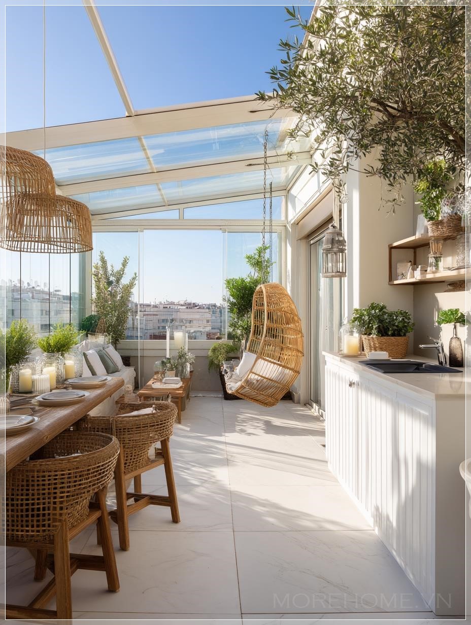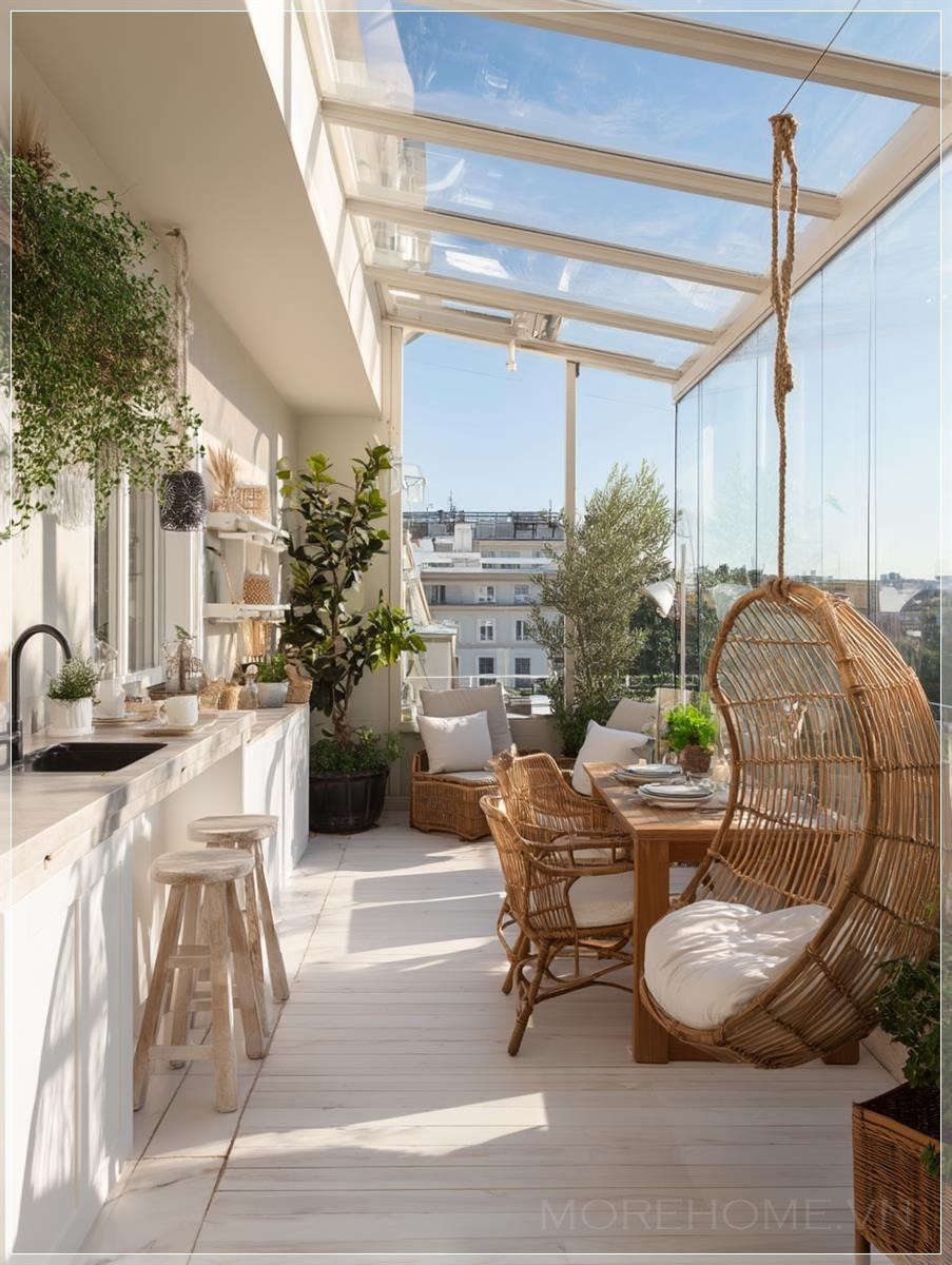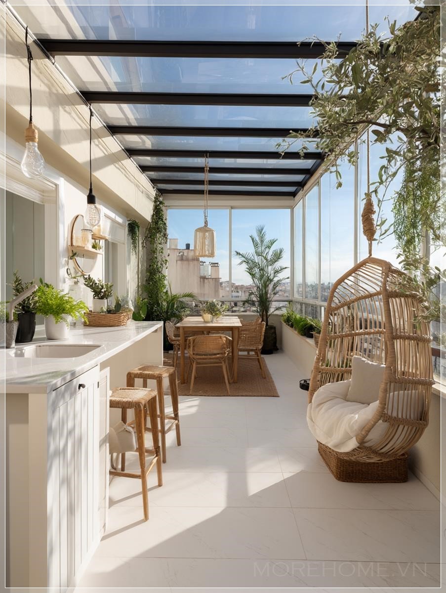 Với sự kết hợp giữa kiến trúc hiện đại và vật liệu kính, một phòng khách hoặc phòng làm việc ngoài trời có thể trở thành một không gian lý tưởng cho những ai yêu thích sự sáng tạo và thư giãn. Một thiết kế ban công hiện đại, nơi mỗi góc nhỏ đều được tận dụng tối đa ánh sáng tự nhiên, không chỉ mang lại cảm giác thoáng đãng mà còn tạo ra một không gian sống động, đầy cảm hứng cho nhà thiết kế.
