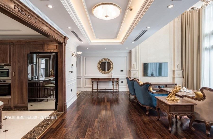 Thi công Mẫu tủ bếp gỗ óc chó căn hộ Duplex Mandarin Garden cao cấp, sang trọng