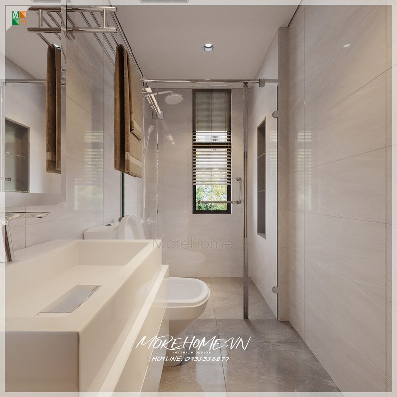 Phòng tắm chung cư nhà phố, biệt thự với thiết kế không gian với tông màu sáng hiện đại kết hợp với nội thất đáp ứng được nhu cầu sử dụng mang tới sự tiện nghi hiện đại.